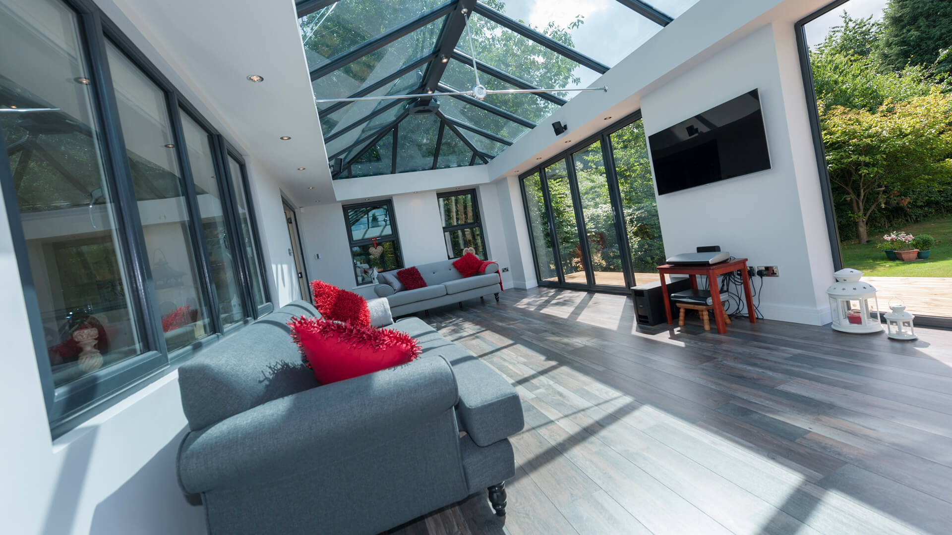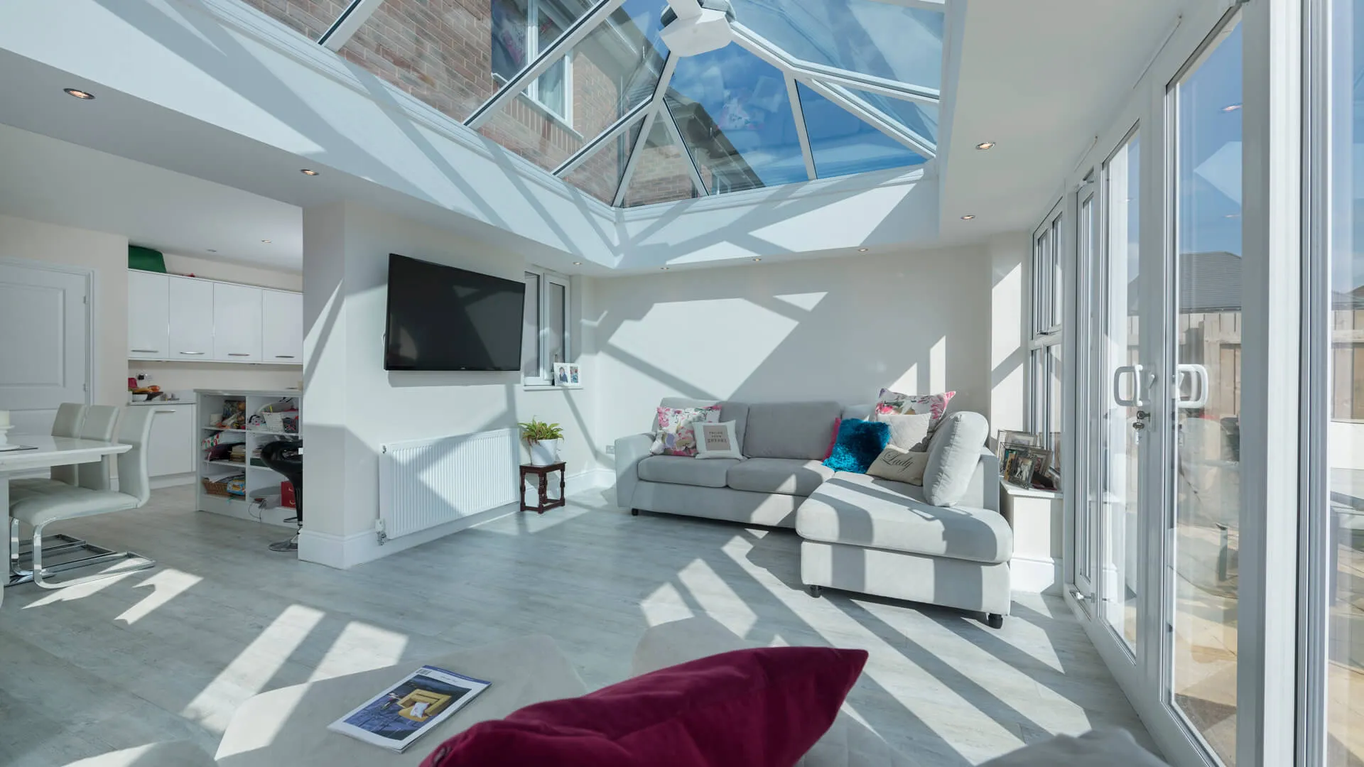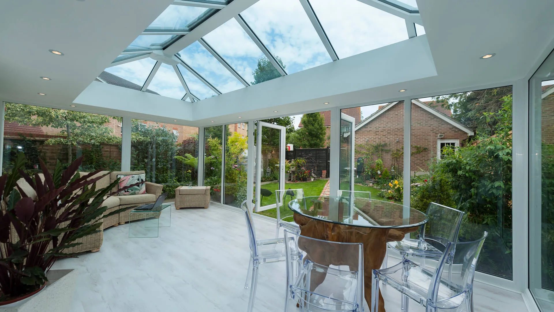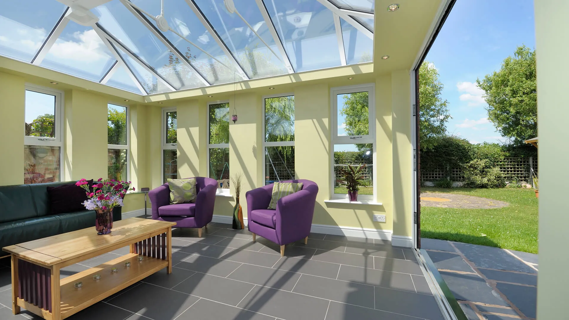 MPN offers several roof options to suit how you want to use your conservatory. Glass roofs maximise natural light, tiled roofs create a more solid extension feel, and solid roofs improve privacy and insulation. We also offer hup! conservatories and upgrade solutions for enhanced year-round comfort and performance.