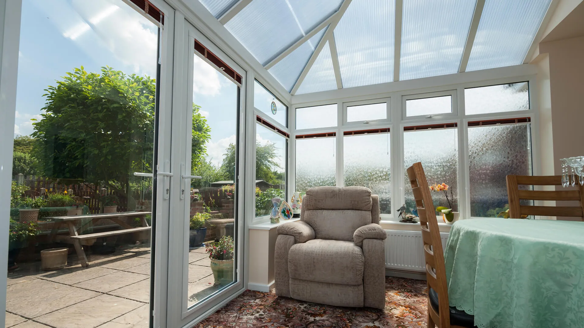 Yes, modern Edwardian conservatories are designed to be far more comfortable throughout the year. With energy-efficient glazing and a choice of roof systems, they can feel warmer in winter and cooler in summer. This makes them suitable for relaxing, dining, working or everyday family use.