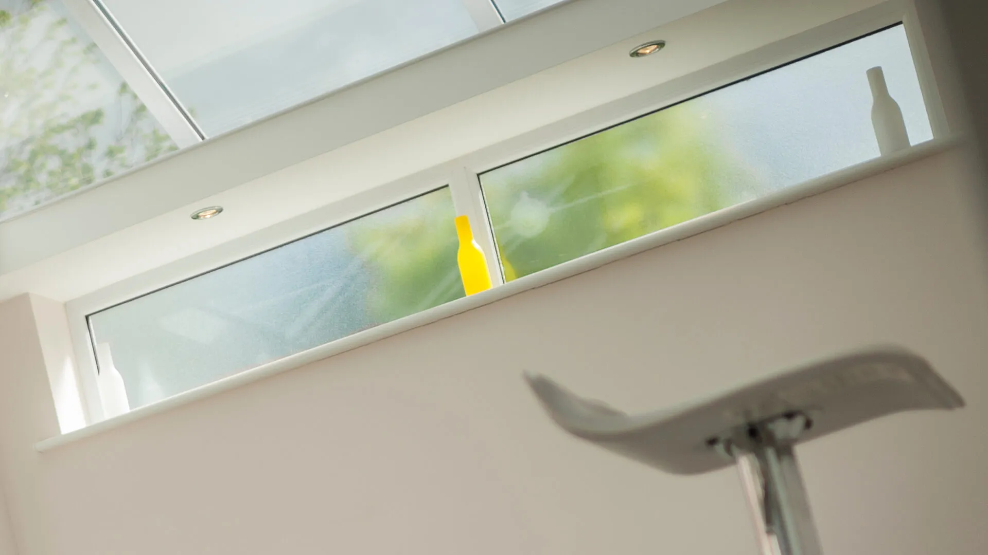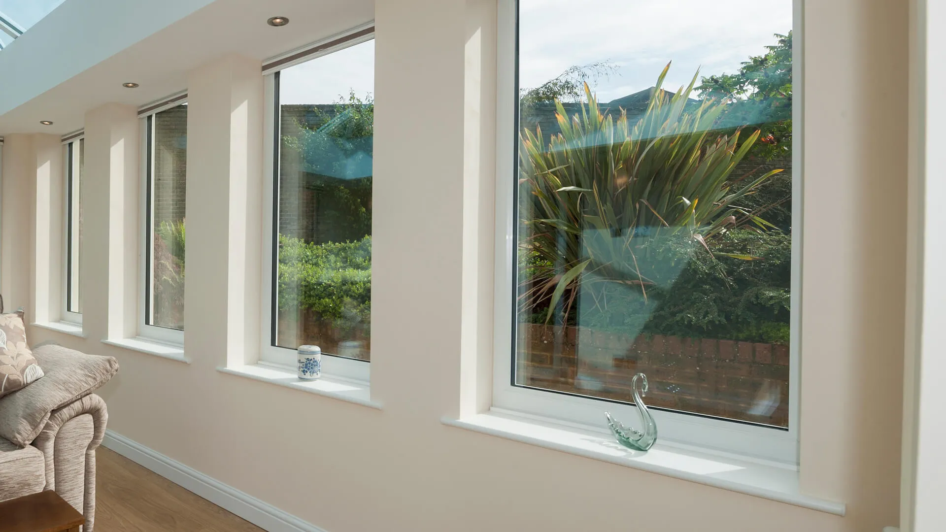 Window frames offering uninterrupted external views.