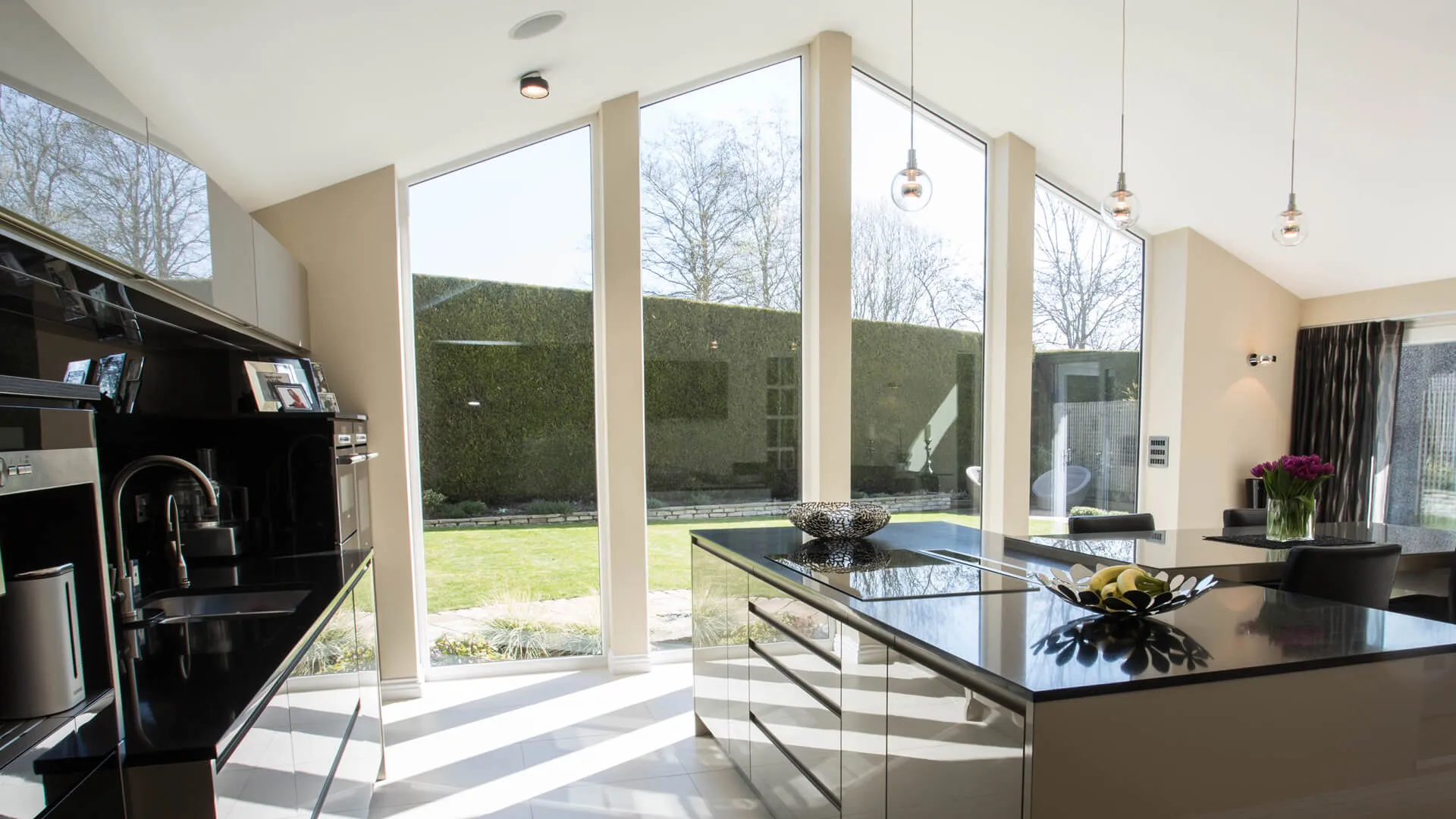 Fixed frame windows are often used in stairwells, feature window areas or large glazed sections where the aim is to maximise natural light. They are also commonly combined with opening windows to create larger window designs.