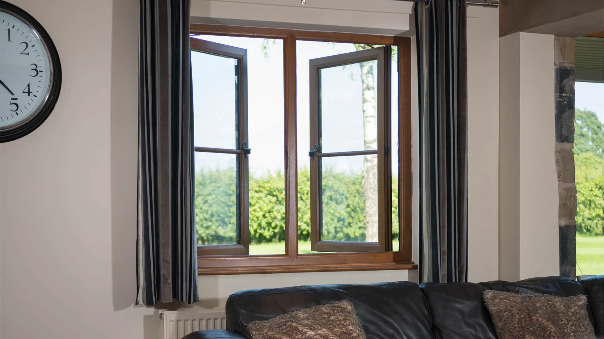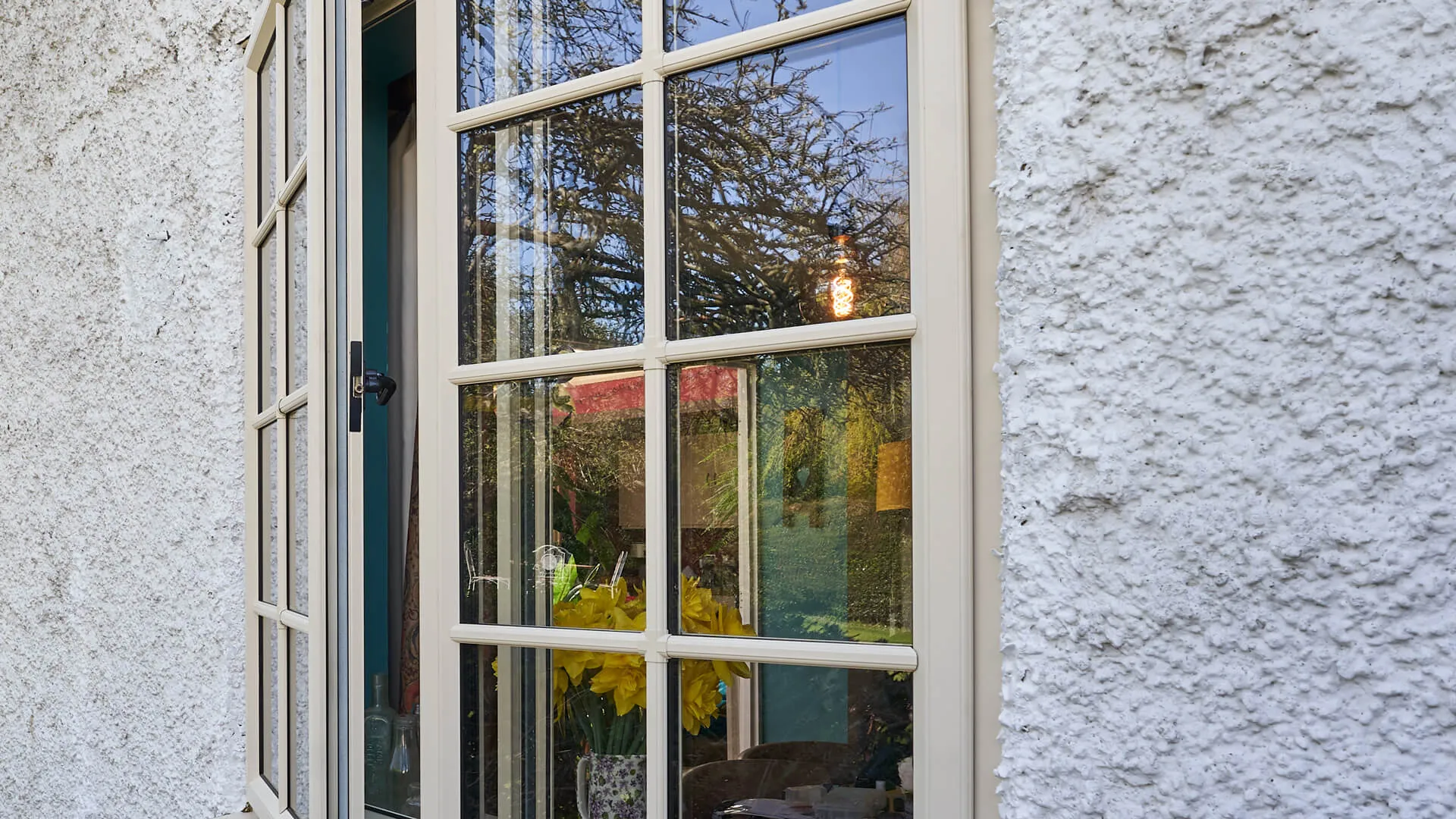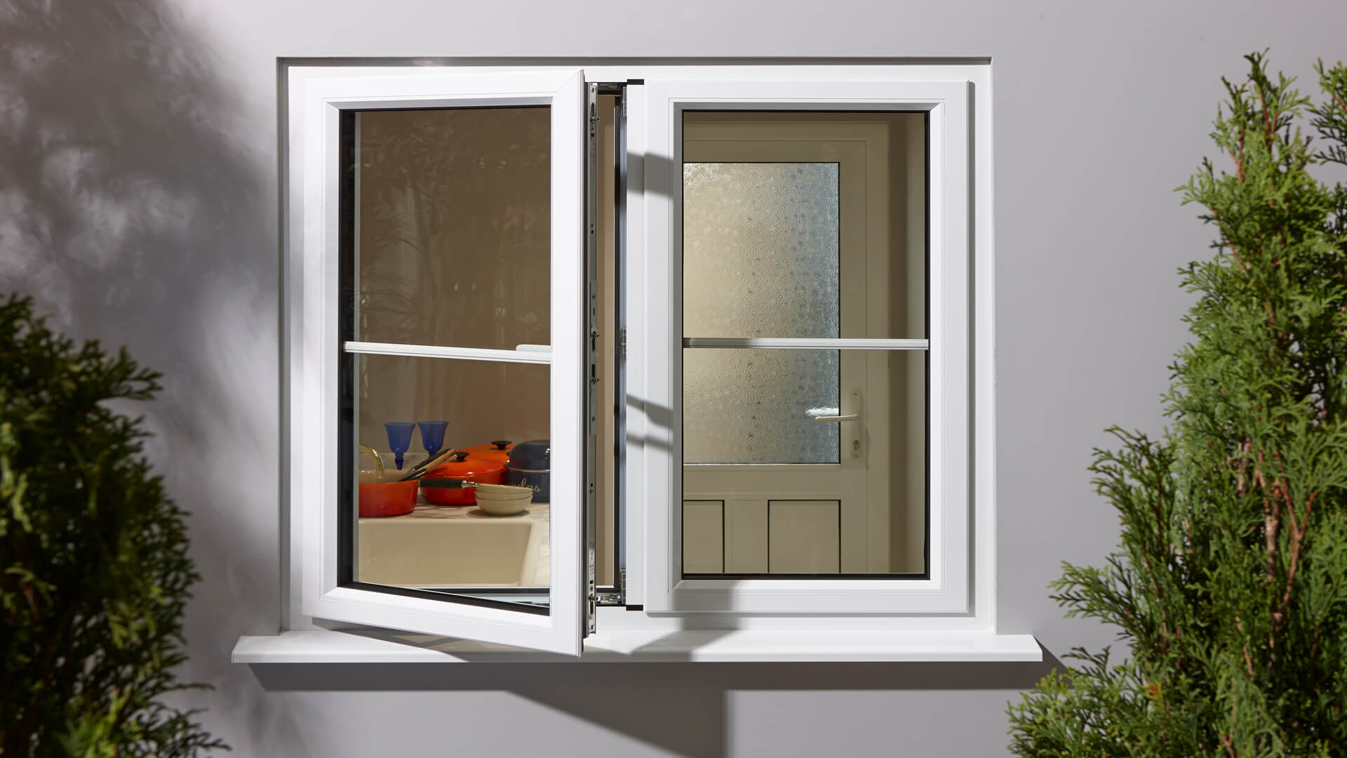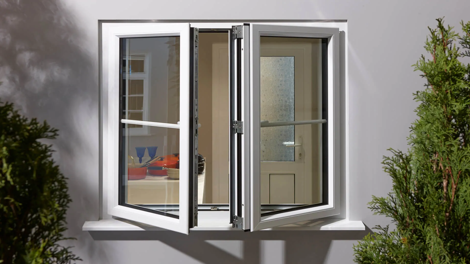 French windows feature two opening sashes that meet in the centre and open outward from the sides. When both are opened, they create a wide, clear opening with no central bar, allowing more fresh air and natural light into your home.